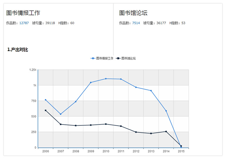 系统提供“作者”、“机构”、“基金”、“期刊”、“主题”等同类对象之间的产出对比报告。您可以按需勾选比较对象,点击“对象比较”按钮来查看相应信息。
