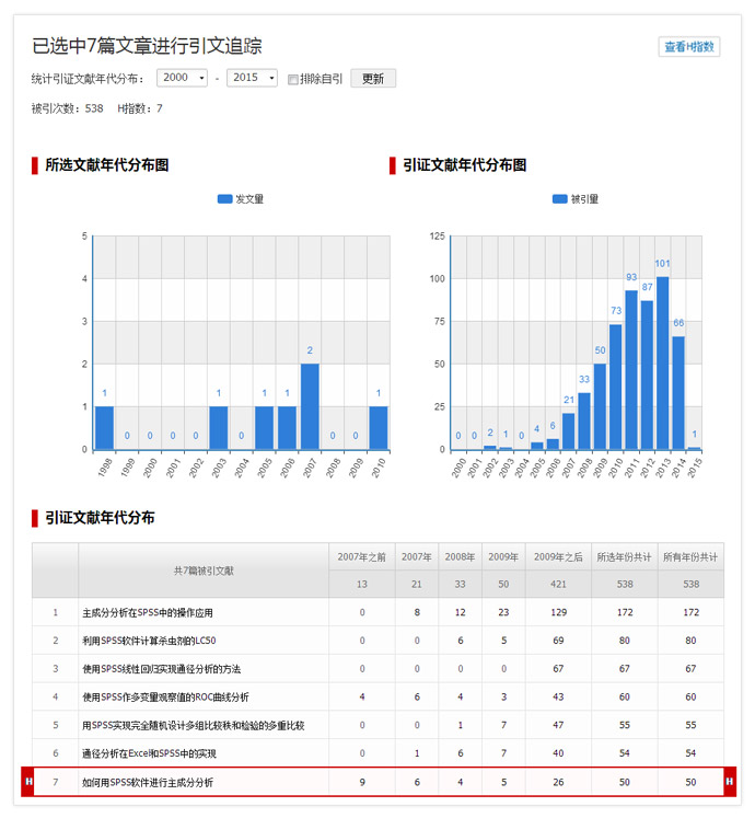 引用追踪分析系统支持单篇或多篇文献的引用分析报告查看,您可以在文献列表页勾选目标文献,点击“引用追踪”按钮后,实现相应信息浏览;
