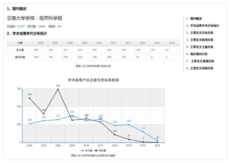 平台提供基于任意对象的计量分析报告,该报告是以学术计量体系为理论基础,以大数据分析为技术储备,以中文科技期刊数据库为数据原型,经过严密的计算后自动生成的。通过阅读该报告,您可以快速掌握相关领域内的前沿学术成果,了解相关学术信息。